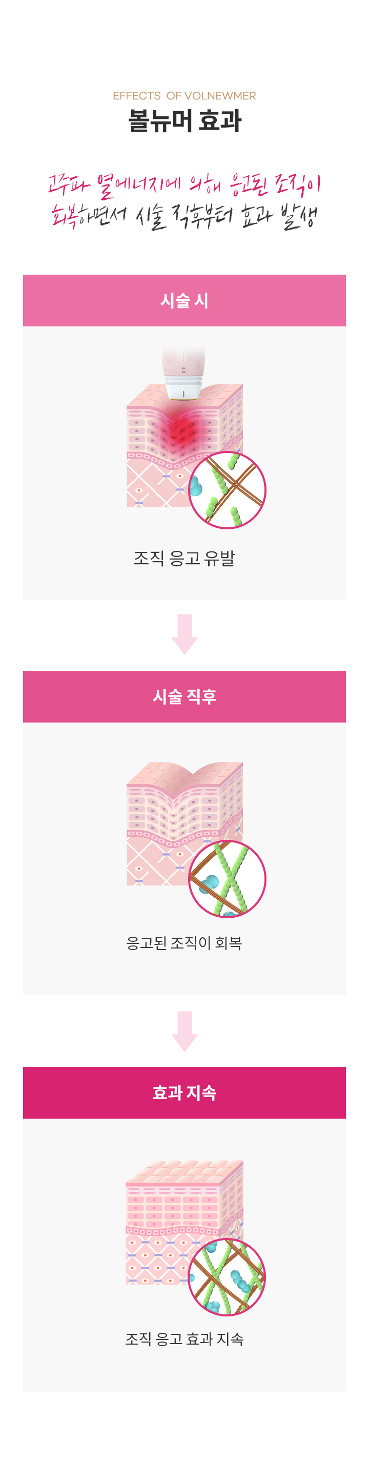 1 볼뉴머의 경우, 시술 후 1개월에 걸쳐 서서히 콜라겐 리모델링이 진행되며, 보통 3~5개월 주기로 재시술을 권장합니다.