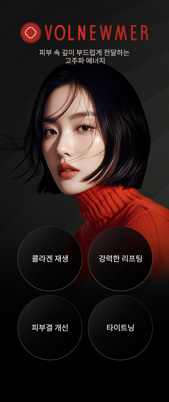 고주파 에너지를 피부 조직까지 강하고 안전하게 전달하는 리프팅 장비로 피부 진피층의 콜라겐을 활성화하여 타이트닝 효과, 피부 늘어짐 개선, 피부 결 개선에 매우 효과적입니다.